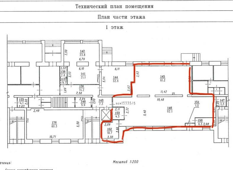 Помещение 255 м2 расположено на первом этаже в здании по адресу: пр-т Мира, 33а.