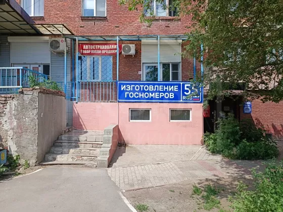 Расположено на первой линии, вход со стороны дороги. Непосредственно возле ГИБДД (активный пешеходный и автомобильный трафик).